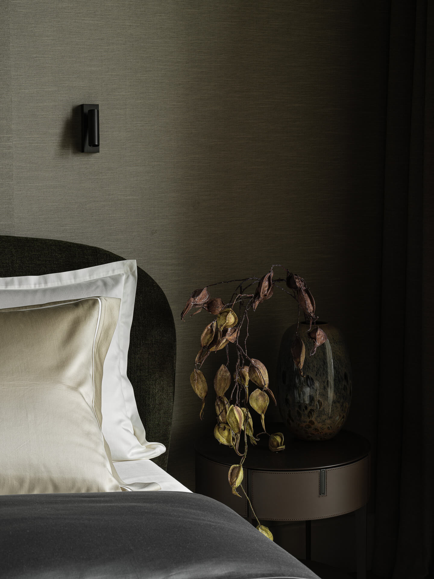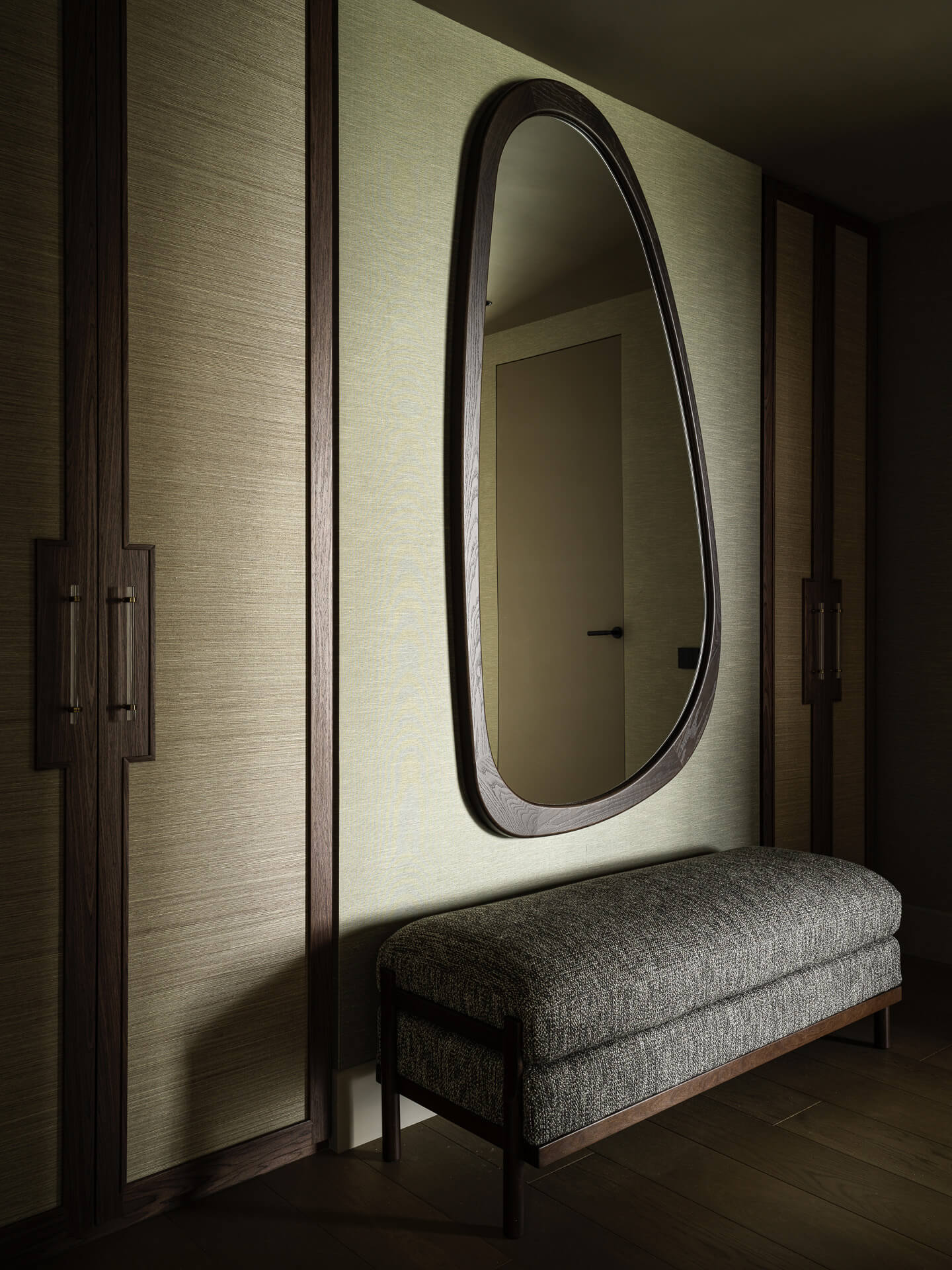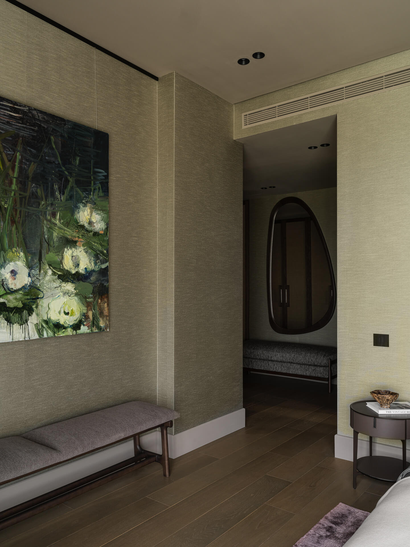 Акценты — бра, направленные споты и скрытые линии в нишах.
