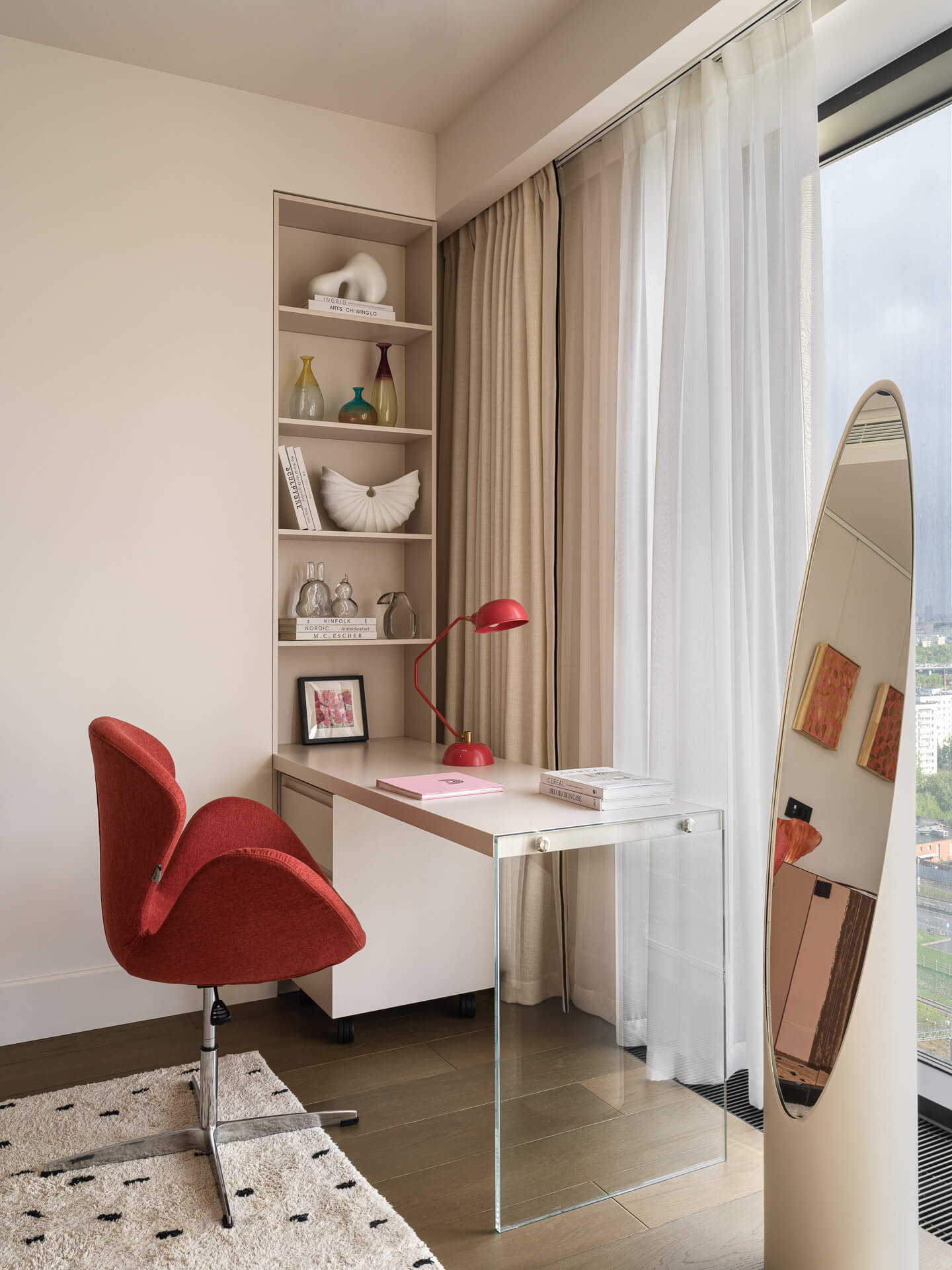 Отдельно про мебель: часть шкафов и полок делалась на заказ, по размерам квартиры, чтобы не потерять визуальный баланс.