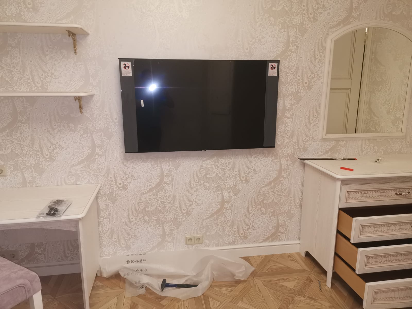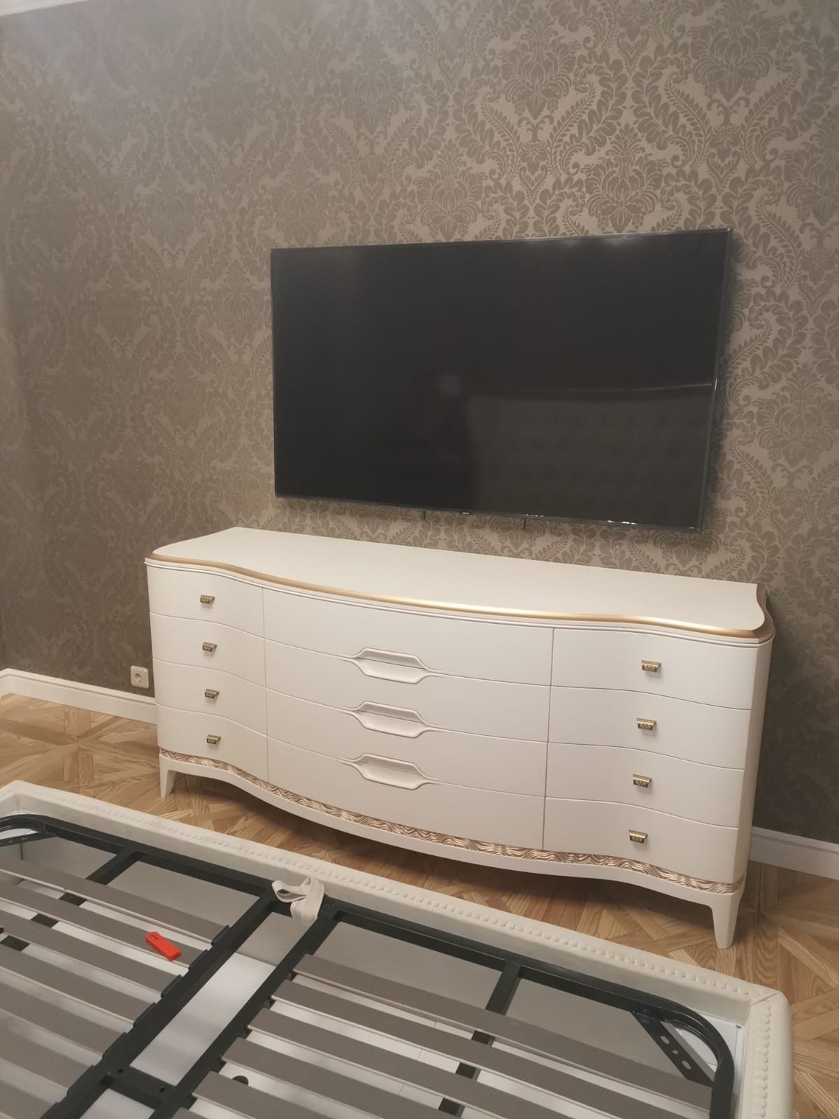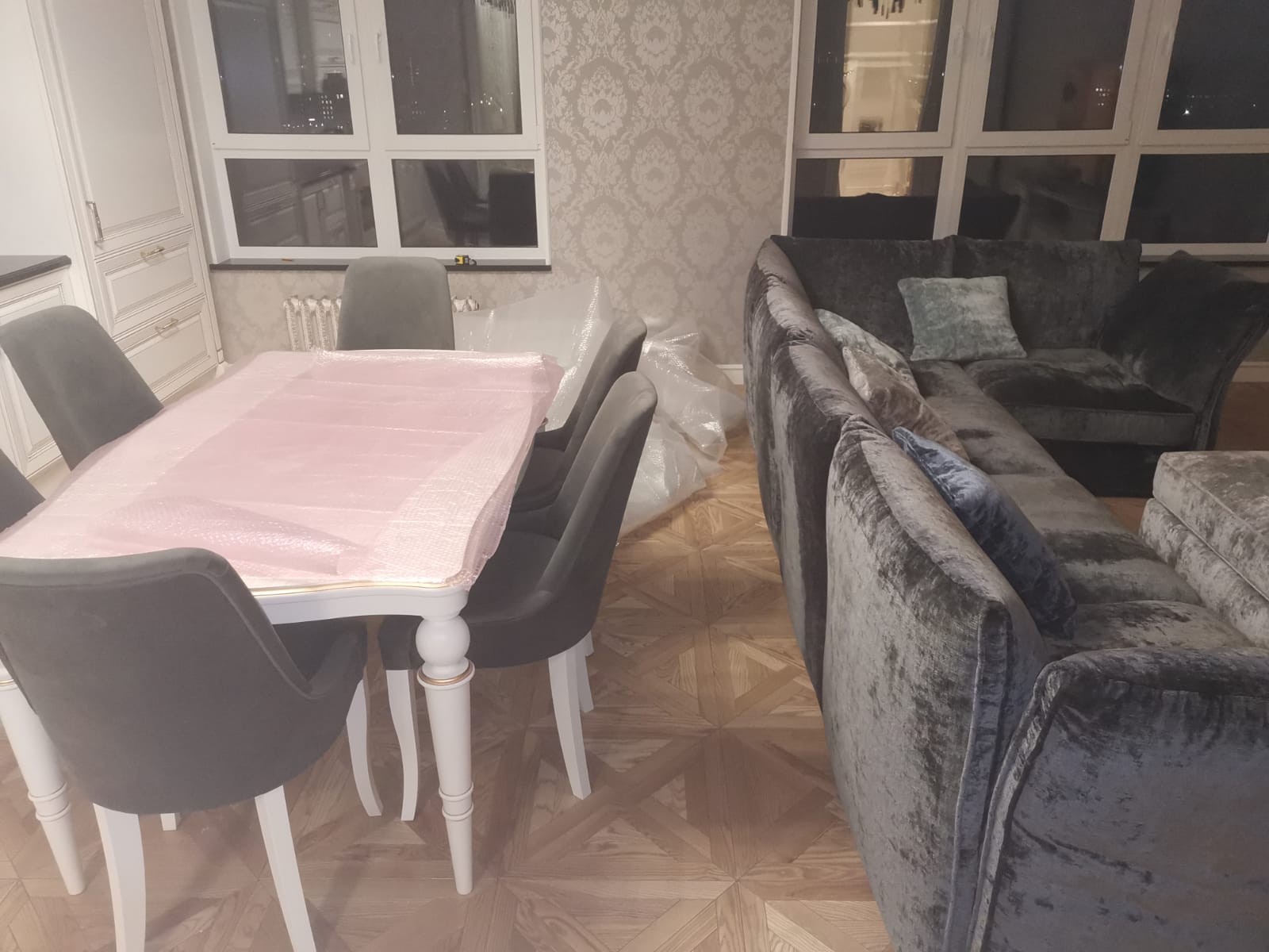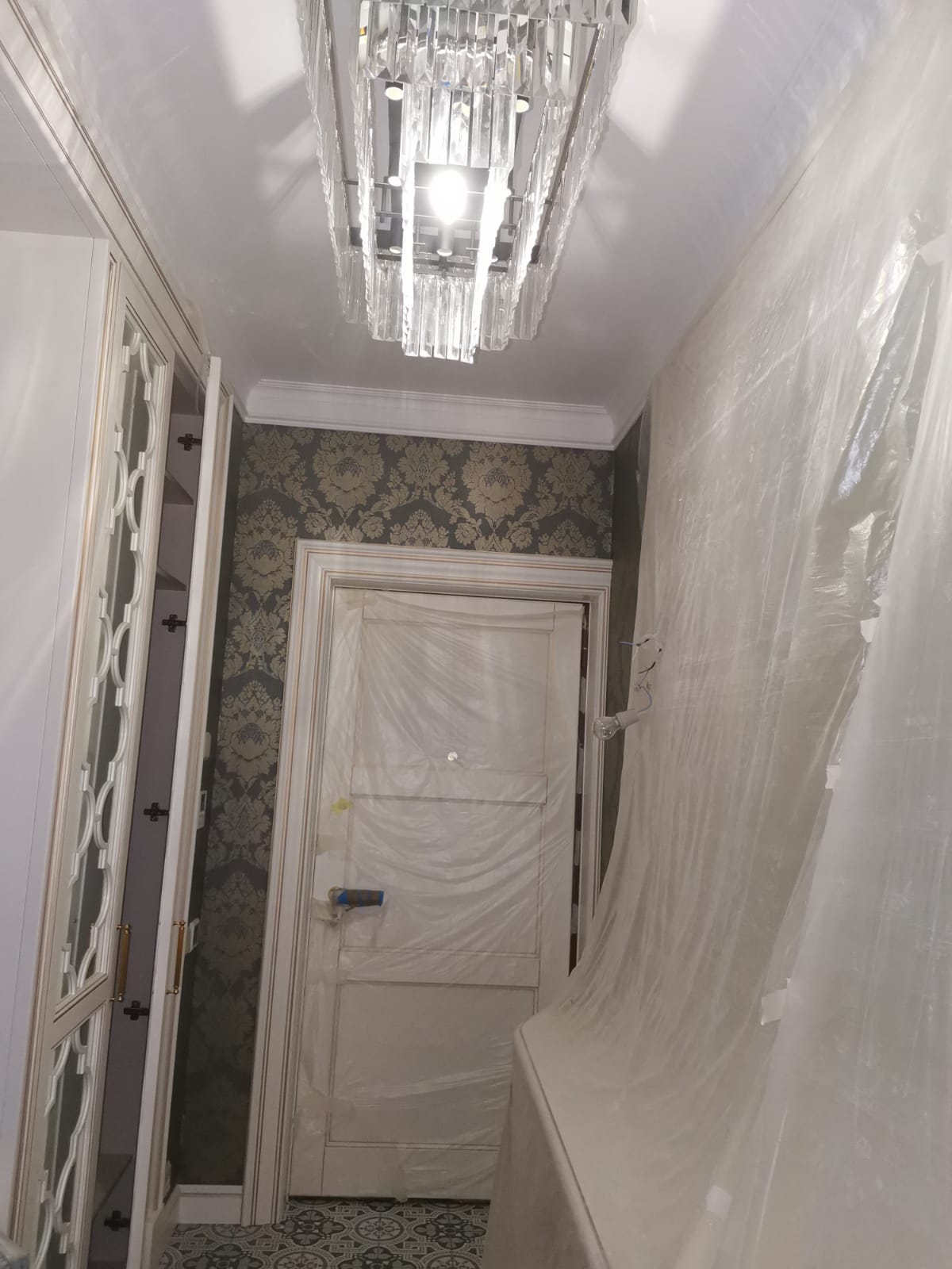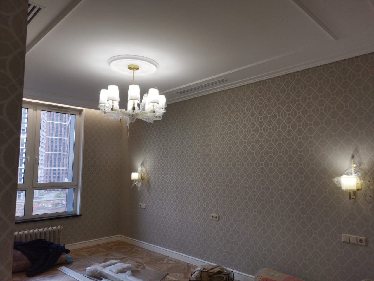 Основной задачей стали тёмные виниловые обои, качественный паркет, сложный потолок и крупные люстры — именно такие элементы хотели видеть хозяева. Но чтобы всё это выглядело гармонично, пришлось грамотно выстроить инженерную часть, подготовить стены, усилить электрику под мощные источники света, продумать высоту потолочных конструкций и аккуратно состыковать паркет с другими покрытиями. Результат получился именно таким, как ожидали клиенты — уютным, тёплым и благородным.