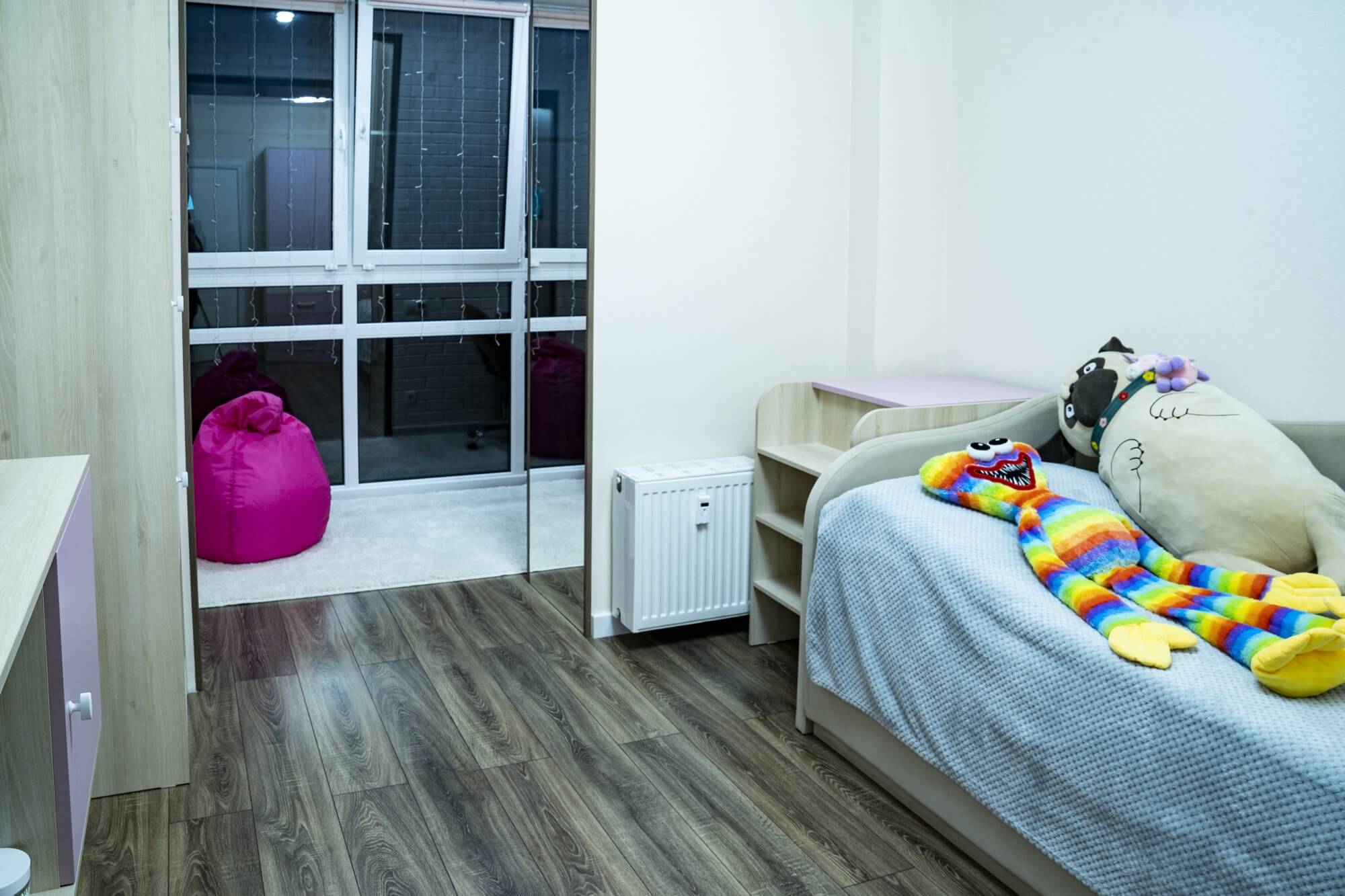 Создание детской комнаты – это всегда особенная задача. Здесь важен не только внешний вид, но и безопасность, экологичность материалов и, конечно же, возможность трансформации по мере роста ребенка. В ЖК «Северный берег» мы сделали акцент на мягких «не кричащих» тонах, использовали натуральные отделочные материалы. Мебель подбиралась с учетом безопасности: закругленные углы, отсутствие мелких деталей, которые ребенок мог бы проглотить. Мы предусмотрели достаточно места для игр, учебную зону и уютное место для отдыха. Важно отметить, что такой ремонт детской комнаты требует особого подхода к выбору красок и покрытий, которые должны быть гипоаллергенными и легко моющимися.