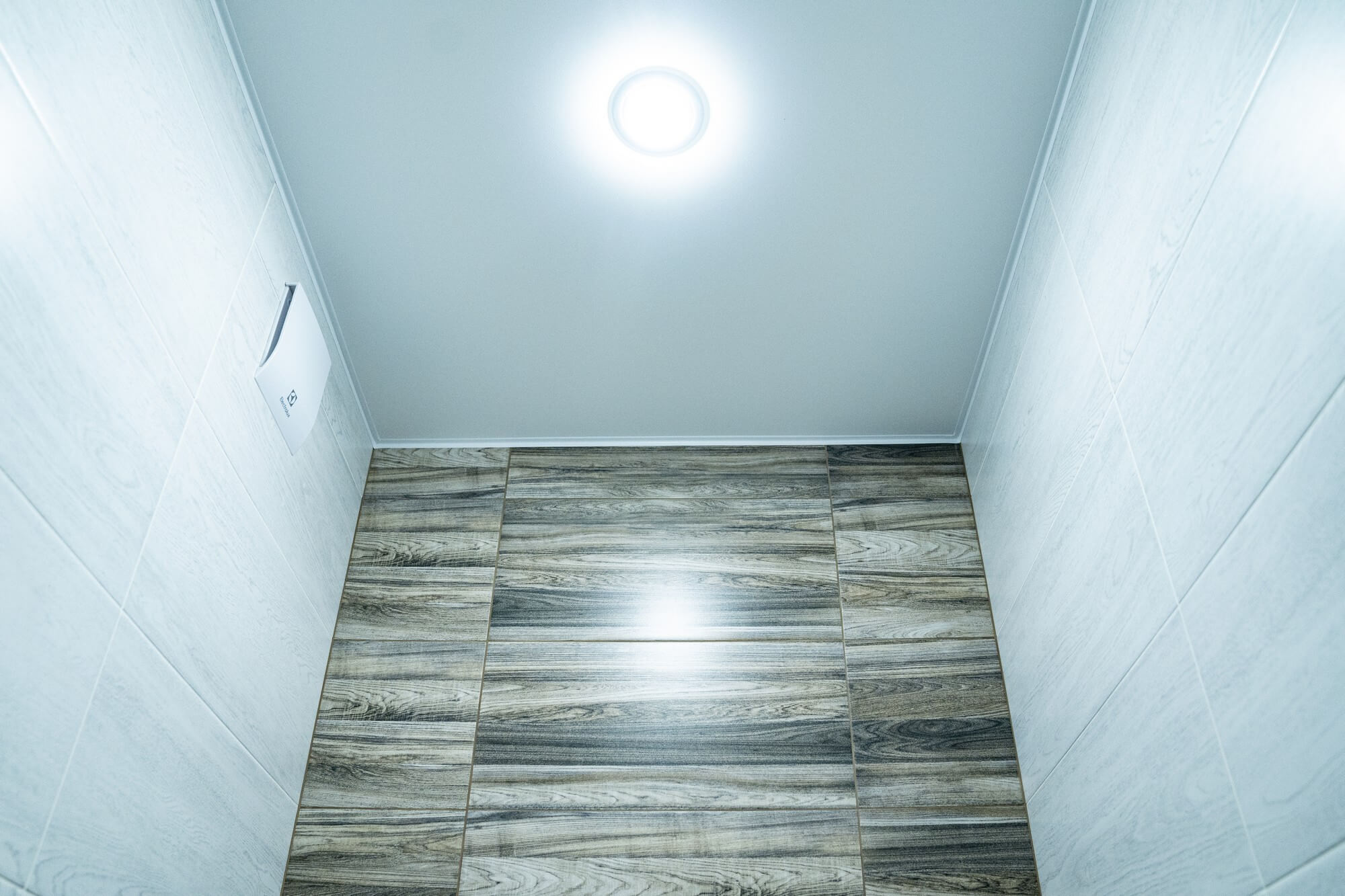 В большинстве комнат мы выполнили натяжные потолки. Это быстрое, чистое и эффективное решение. Они позволяют идеально выровнять поверхность, скрыть коммуникации и установить любую конфигурацию освещения. К тому же, натяжные потолки обладают влагостойкостью, что важно для кухни и ванной комнаты.