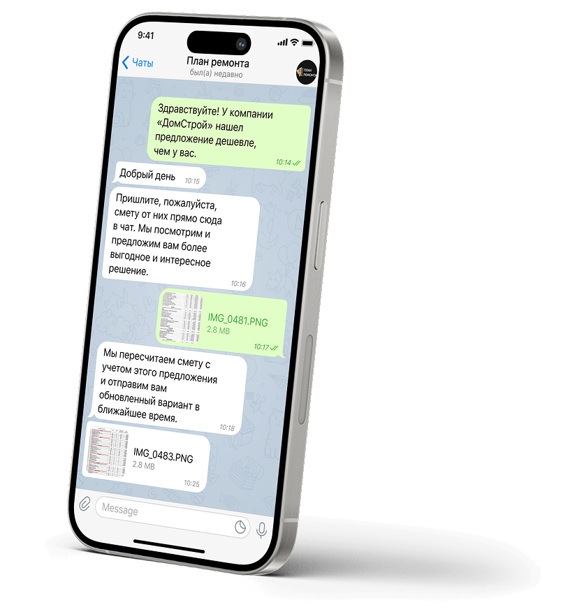 Пришлите смету от конкурентов прямо в мессенджер и мы предложим более выгодное и интересное решение