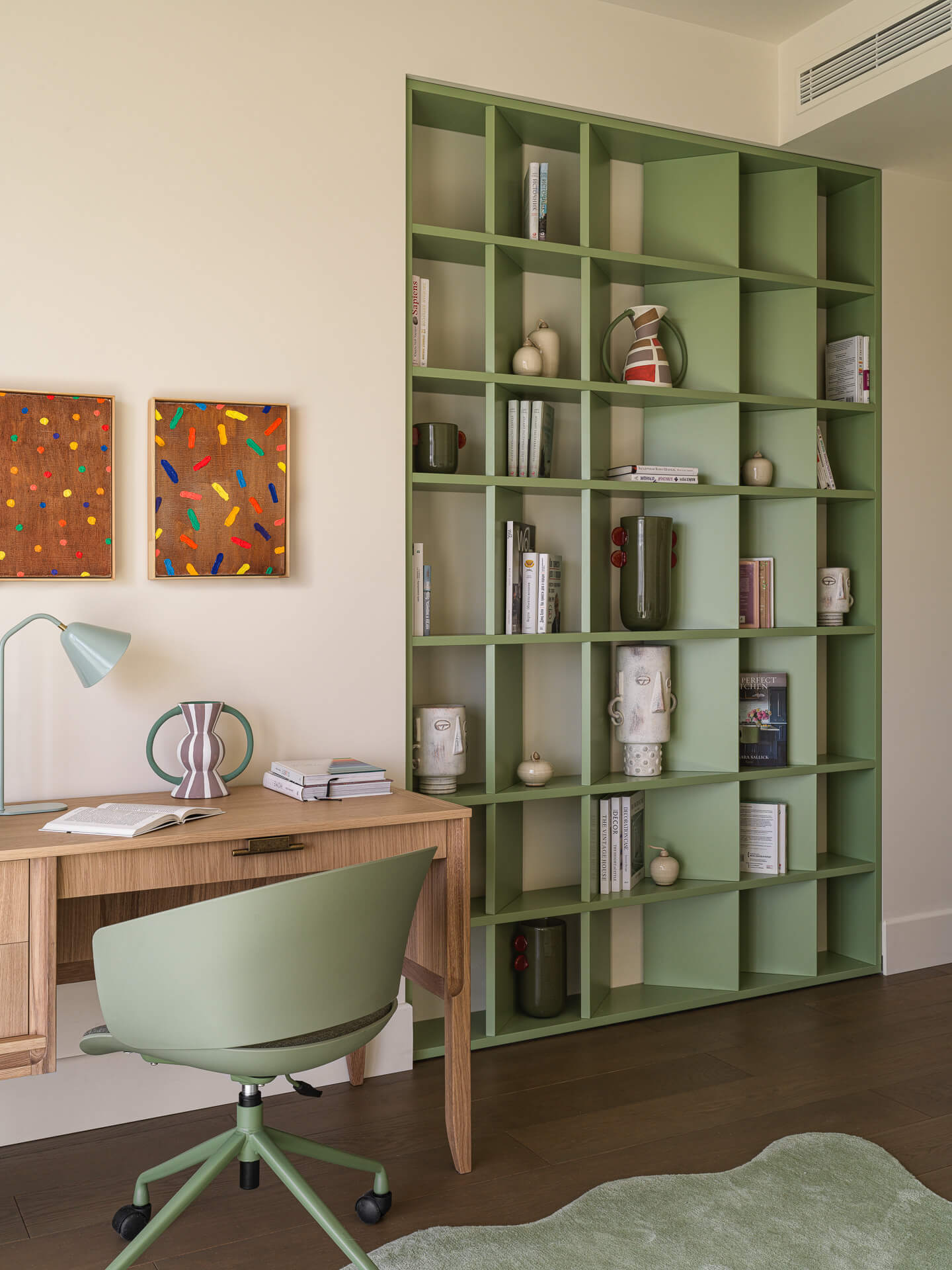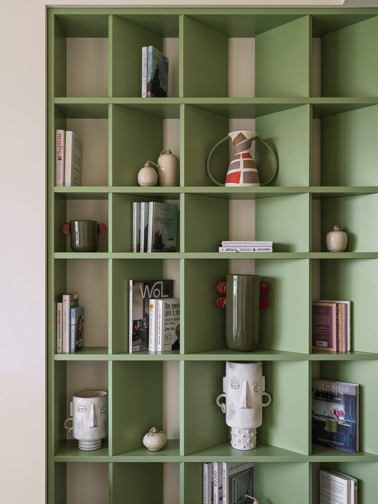 Отдельно про мебель: часть шкафов и полок делалась на заказ, по размерам квартиры, чтобы не потерять визуальный баланс.