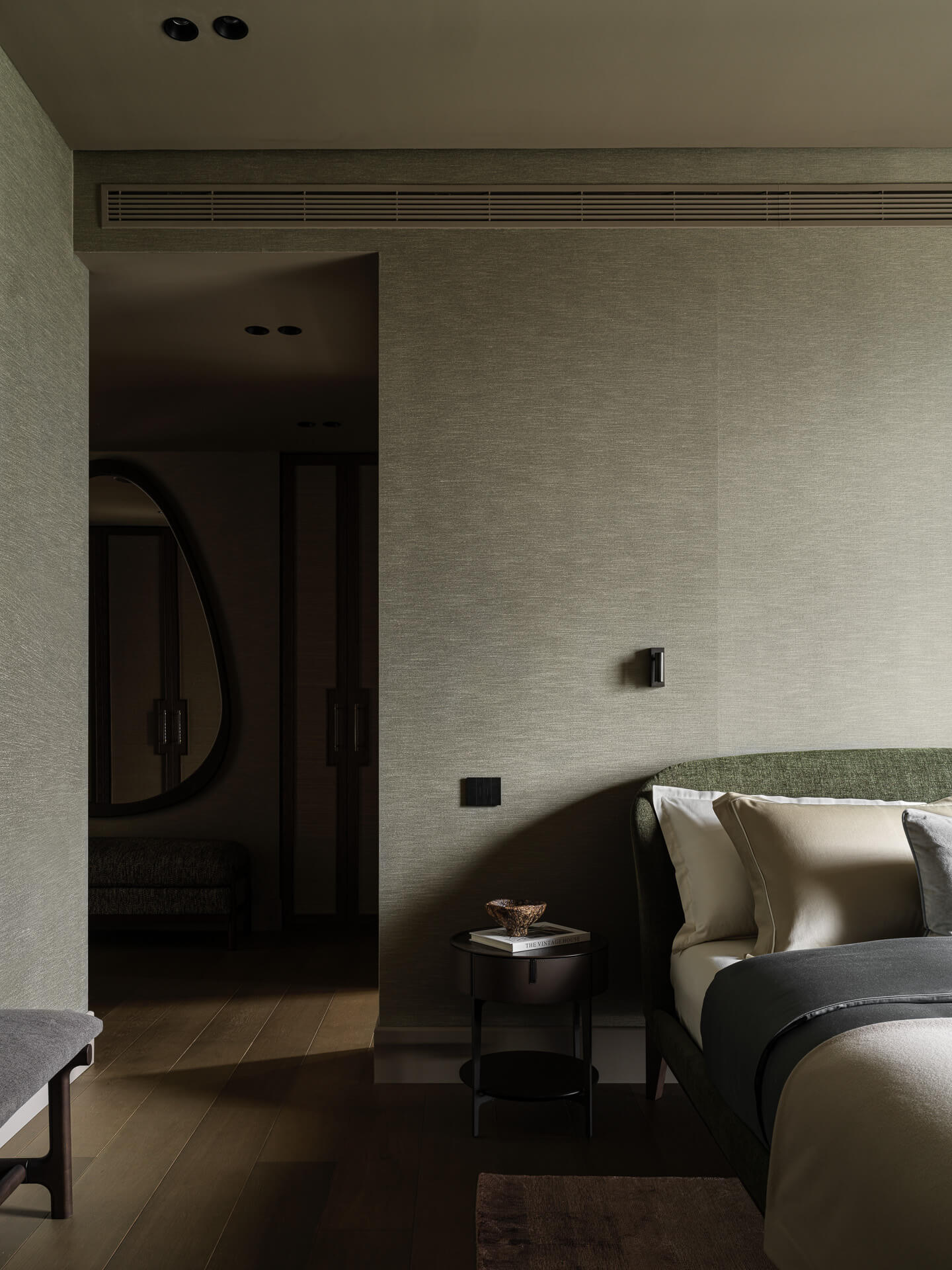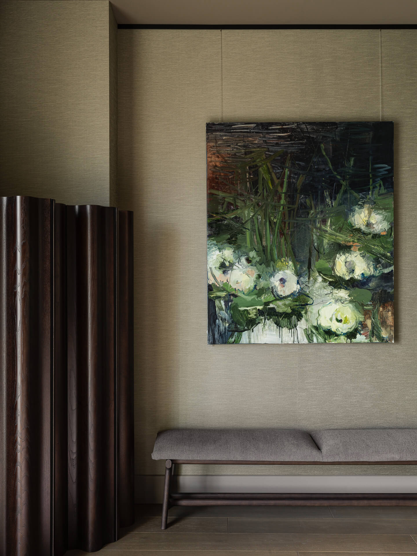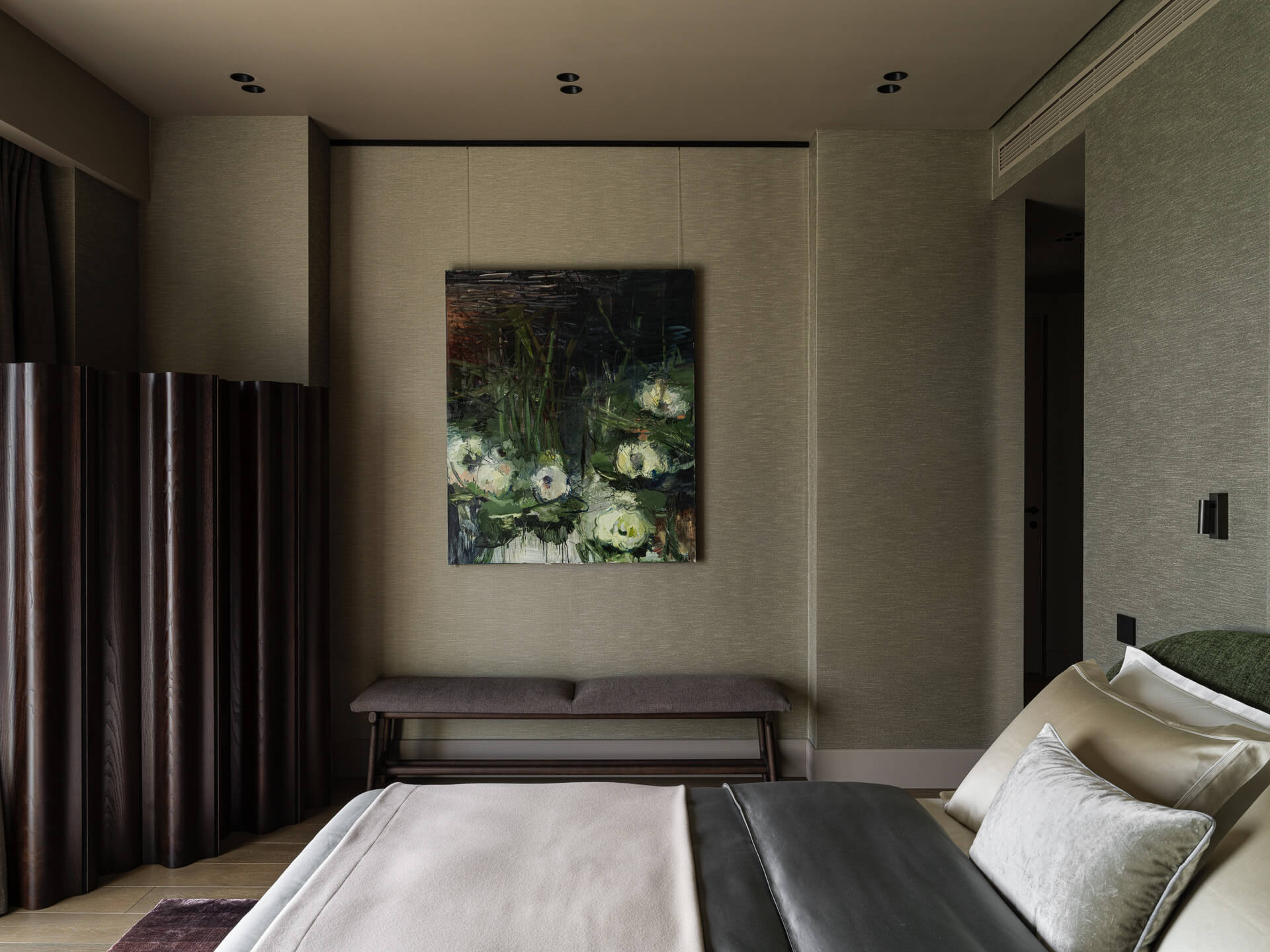 Акценты — бра, направленные споты и скрытые линии в нишах.