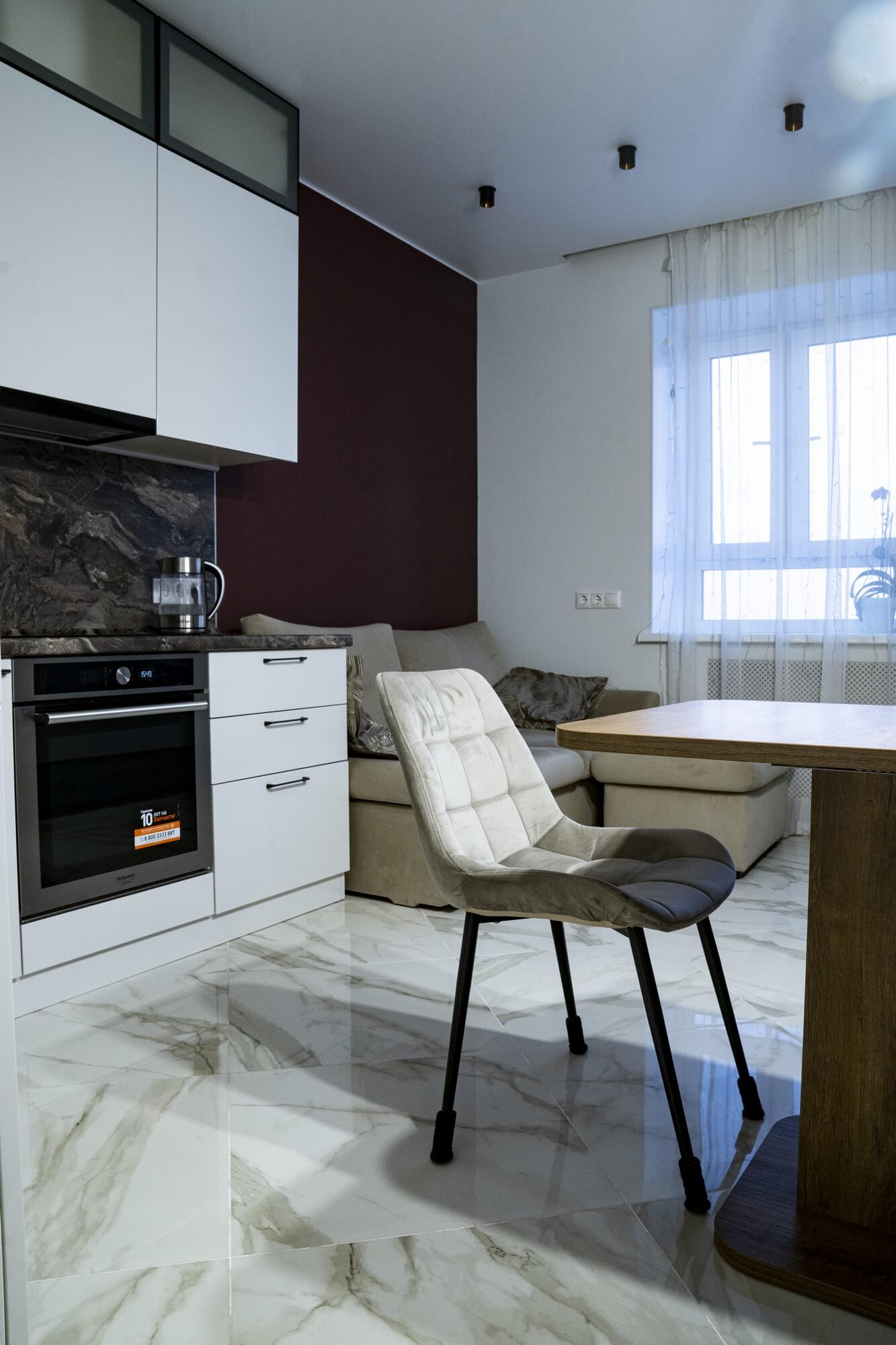 Кухня – это место, где проводит время вся семья, поэтому она должна быть не только красивой, но и максимально удобной. В данном случае мы столкнулись с небольшой площадью, поэтому эргономика стала нашим главным приоритетом. Мы спроектировали кухню так, чтобы все необходимые предметы находились под рукой, а рабочие зоны были расположены логично. Использование светлых тонов и глянцевых поверхностей визуально расширило пространство. Особое внимание уделили системе хранения: вместо обычных шкафов мы использовали выдвижные ящики и антресоли, что позволило значительно увеличить вместимость. Современная бытовая техника, встроенная в гарнитур, добавила комфорта и завершенности.