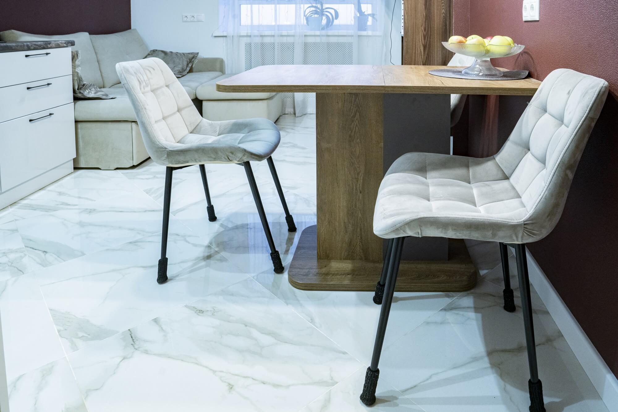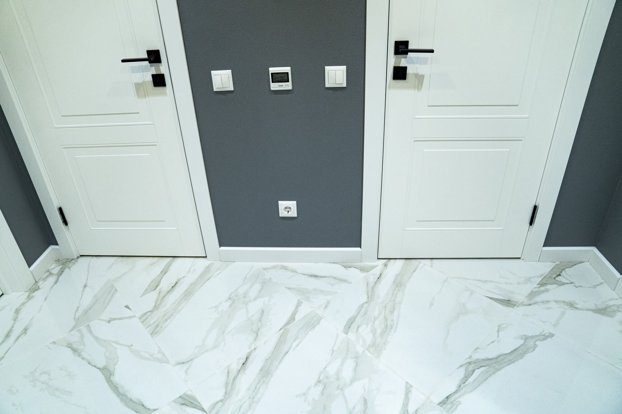 В жилых зонах мы использовали ламинат высокого класса износостойкости. Это отличный компромисс между натуральностью дерева и практичностью. Он устойчив к царапинам, легко моется и выглядит очень достойно. В кухне и санузлах – керамогранит. Этот материал – настоящий чемпион по долговечности и влагостойкости. Современные производители предлагают огромный выбор дизайнов, имитирующих натуральный камень, дерево и даже бетон, что позволяет вписать его в любой интерьер.